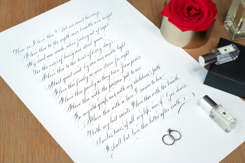 I have calligraphed verses for first wedding anniversaries (the theme for which is, of course, paper), new baby arrivals, Christening gifts and other special occasions and they are some of my favourite pieces to create.